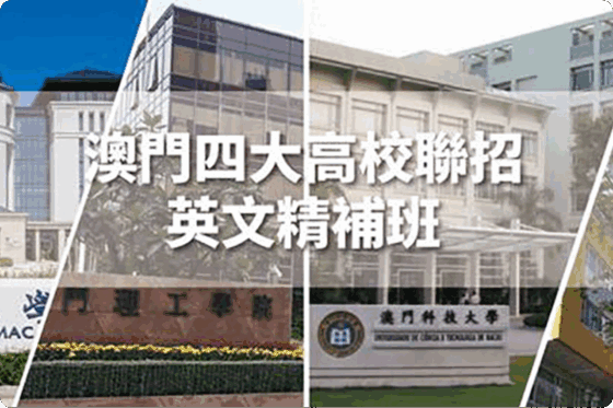 本澳四校聯考英文精補課程- 重點拆解各類題型及操練答題技巧,幫助學員建立信心!國內高考及台灣聯招英文課程- 統合整理及深入淺出分析關鍵題型,強化鞏固學員應考能力